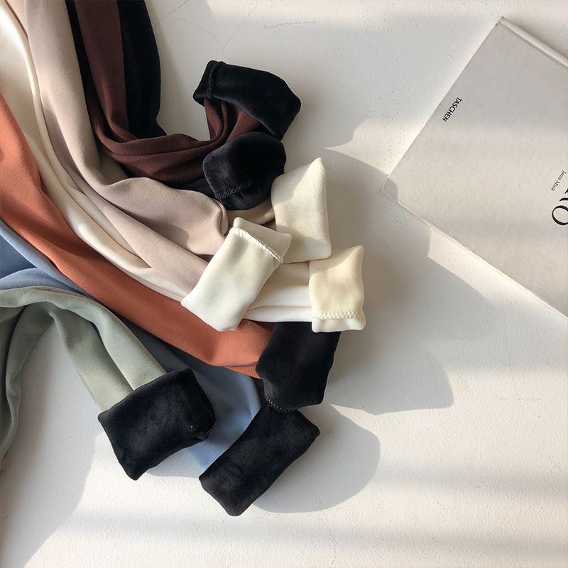 / chic韓風加絨加厚秋冬套頭新款百搭時尚上衣修身長袖打底衫T恤女