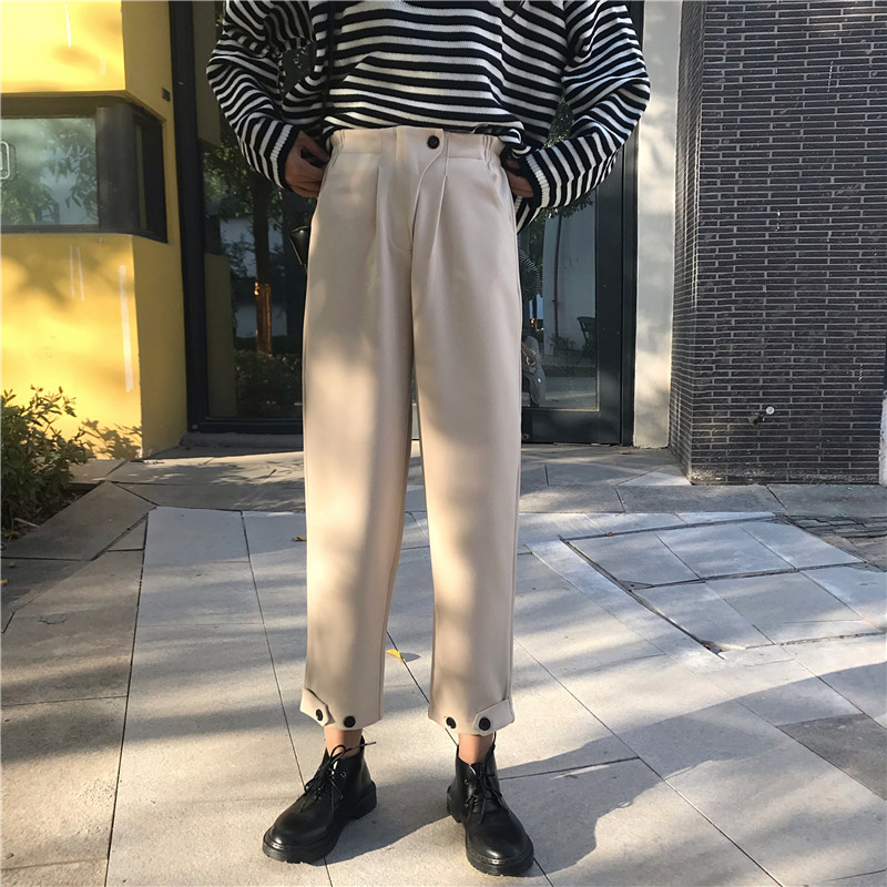 腳口做了一個扣畔的設計,紐扣可以調節的,增加整體的造型,也讓褲子顯得有看頭!