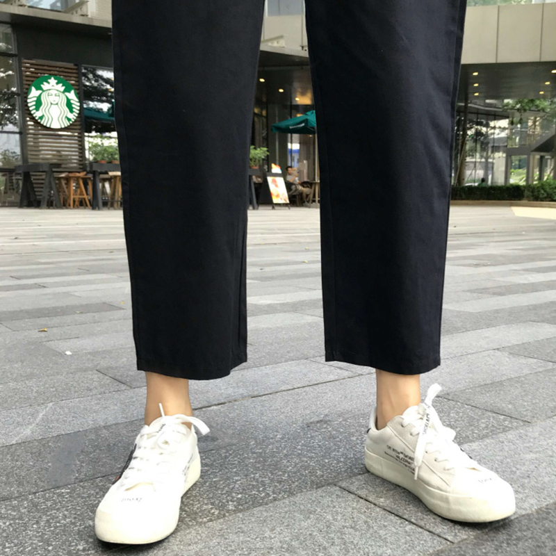 / 2018秋裝新款松緊腰休閑褲寬松復古工裝直筒褲九分哈倫褲子女學生
