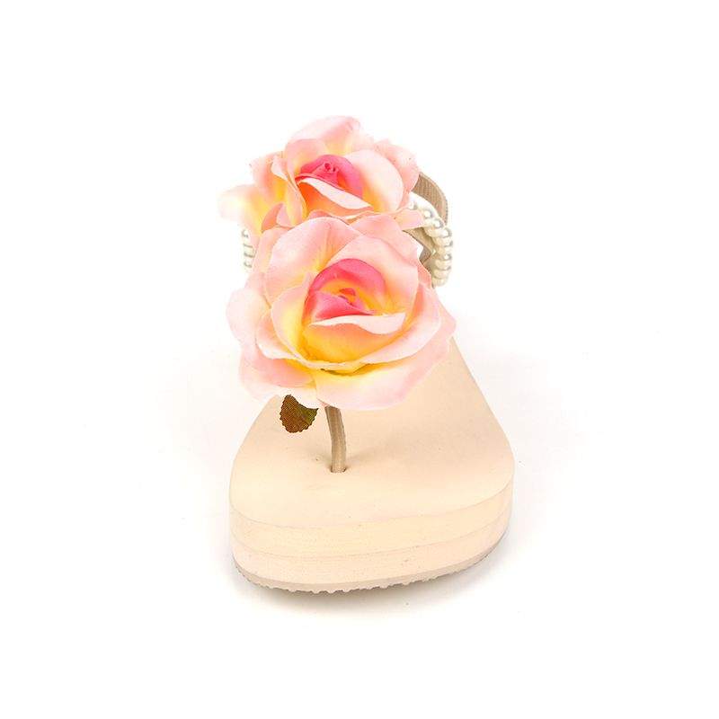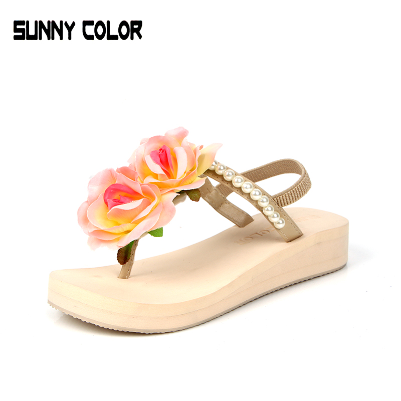 / 涼鞋女夏季時尚防滑松糕厚底坡跟夾腳沙灘花朵涼拖鞋