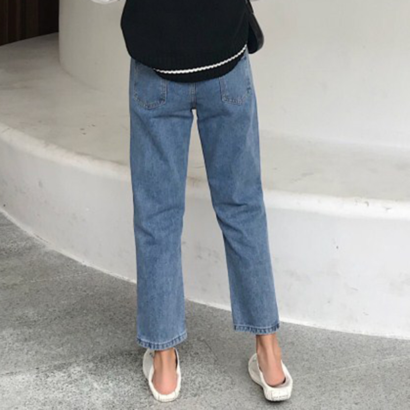 / 復古紐扣高腰顯瘦九分牛仔褲秋冬女裝新款學院風寬松休閑直筒褲子