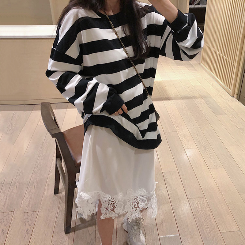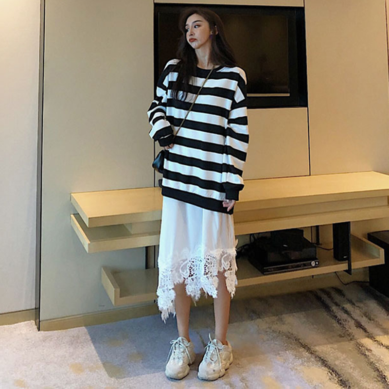 / 御姐套裝女秋冬新款時尚慵懶寬松條紋衛衣外套洋氣白色吊帶長裙子