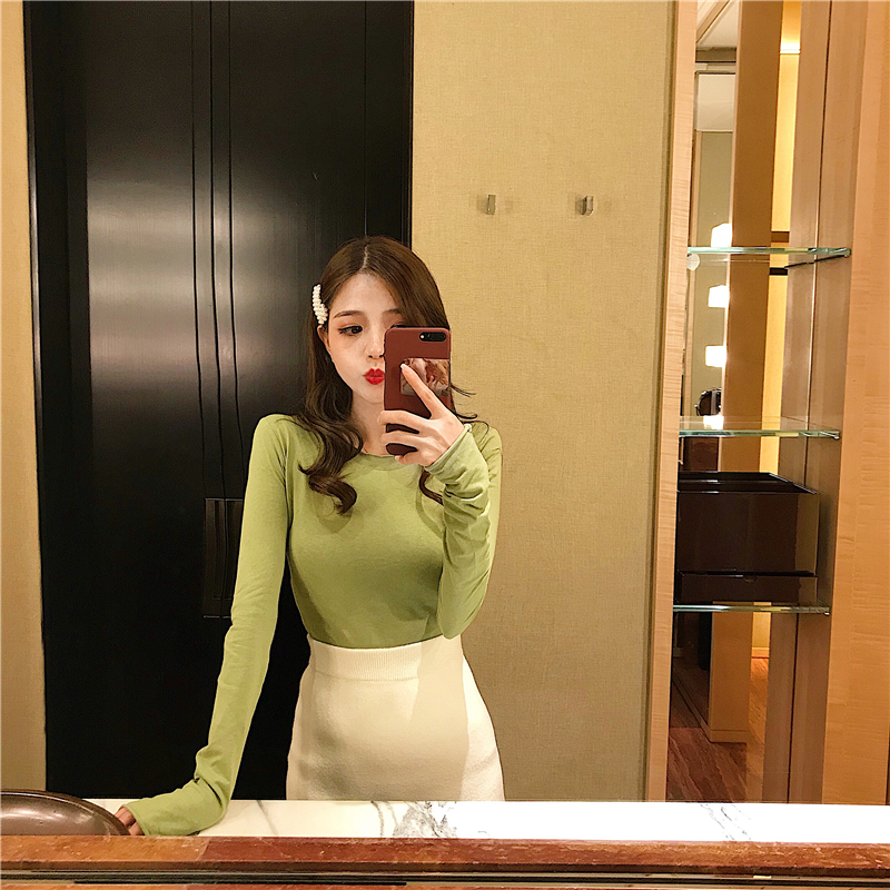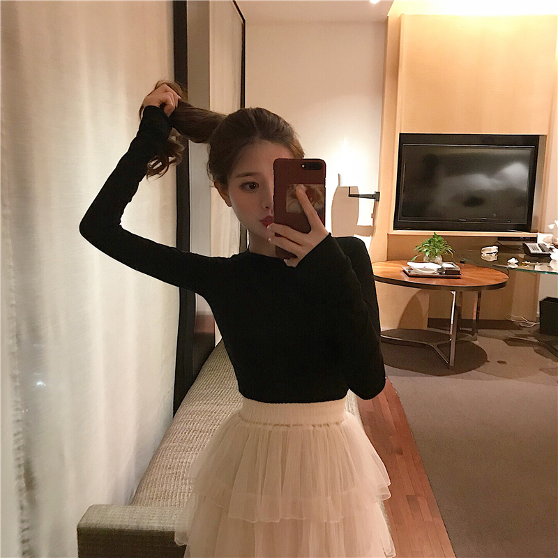 秋裝女2018新款基礎打底衫韓版修身顯瘦純色簡約長袖半高領T恤衫