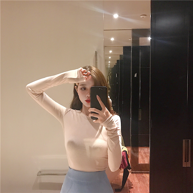韓版打底長袖t袖女保暖麻棉修身緊身性感百搭圓領套頭上衣內搭潮