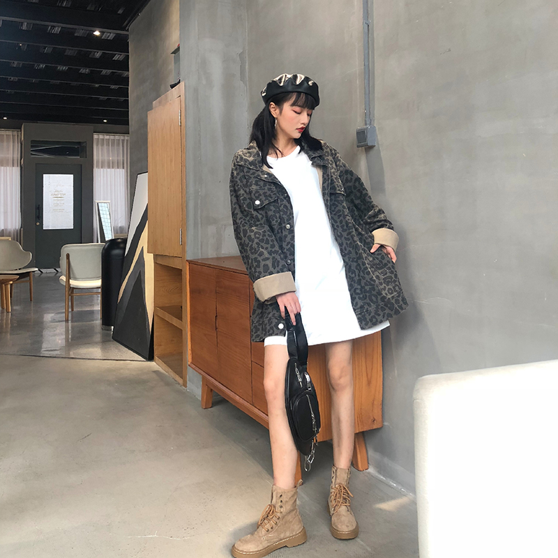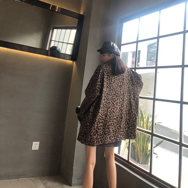 秋裝女2018新款韓版時尚大袖子中長款豹紋風衣外套春秋大碼上衣潮