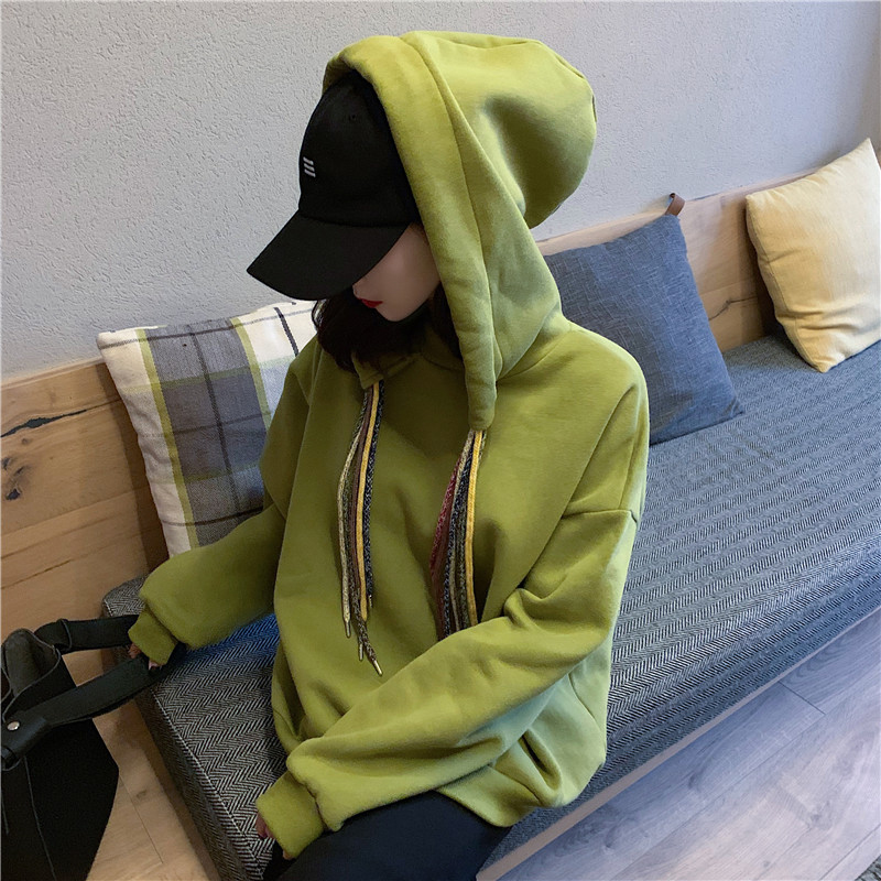 學院風流蘇抽繩連帽衛衣女秋冬裝2018新款韓版慵懶寬松長袖外套潮