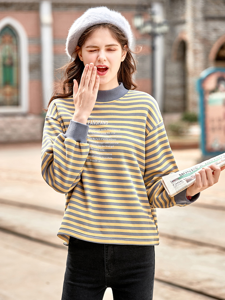 MG小象半高領條紋衛衣女寬松休閑外套冬季新款學生長袖套頭上衣潮