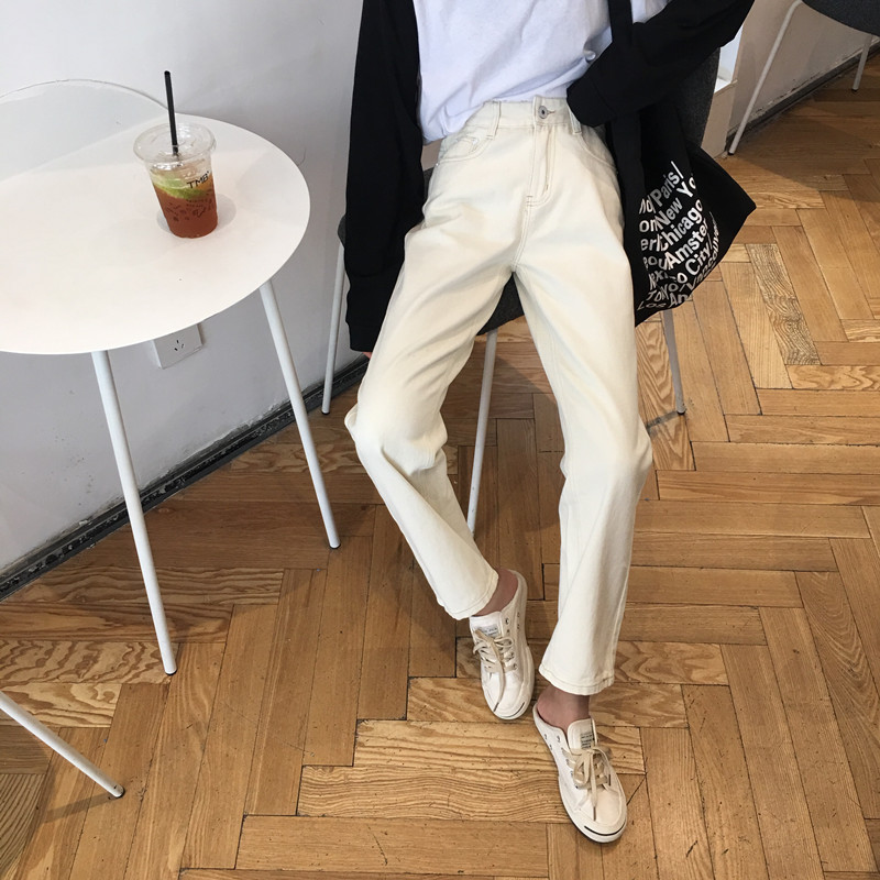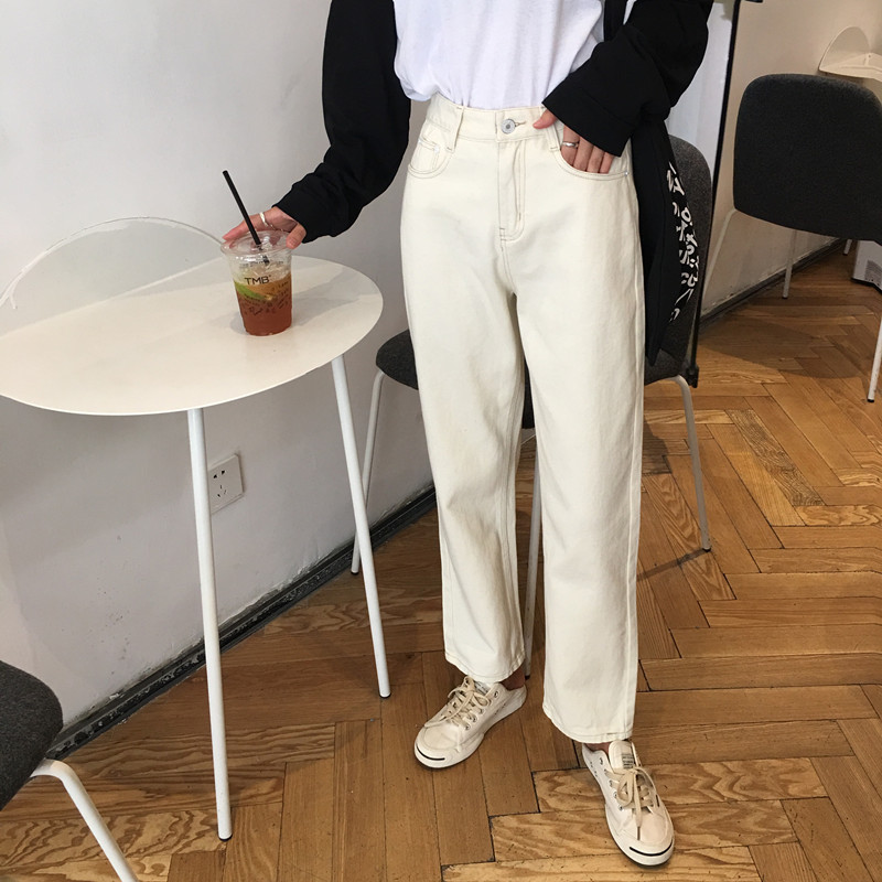 / 褲子女2018秋季新款韓版小清新百搭學生復古chic寬松闊腿牛仔長褲