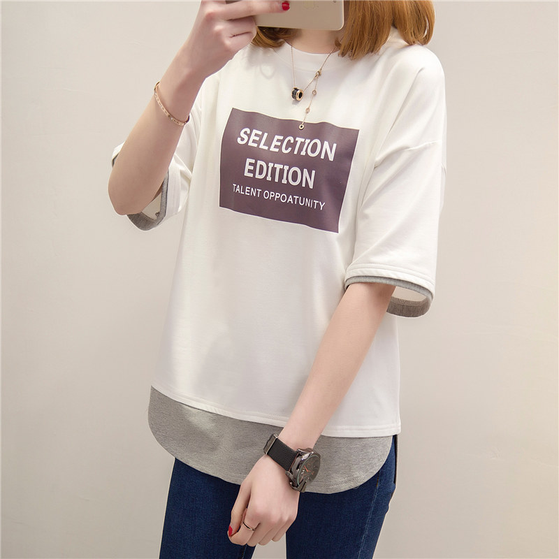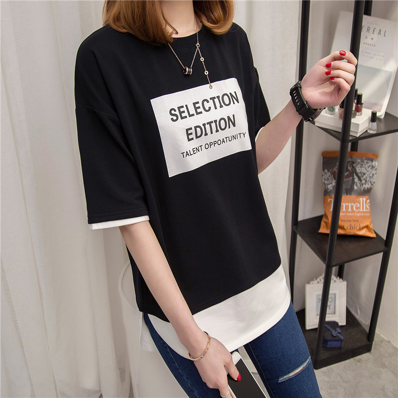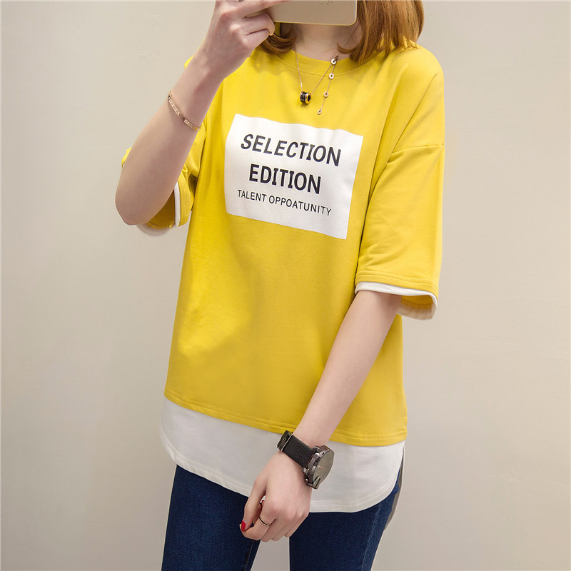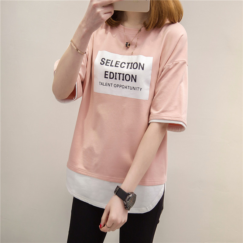 / 短袖t恤女上衣寬松韓版體恤假兩件中長款體恤夏裝新款女衣服
