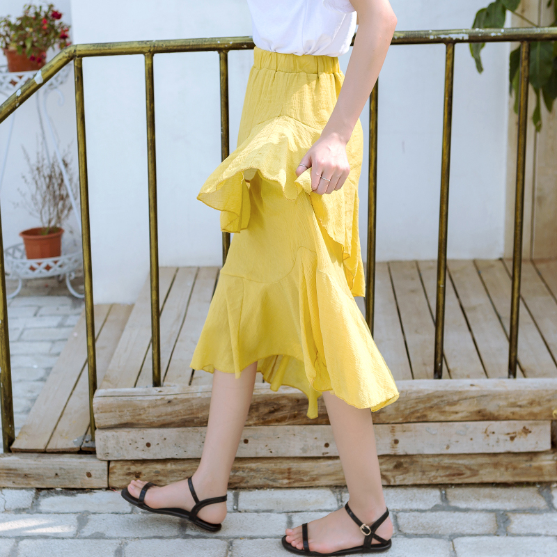 / Caqa/珂奇春夏新款韓國中長款半身蛋糕裙雪紡蓬蓬裙長裙高腰