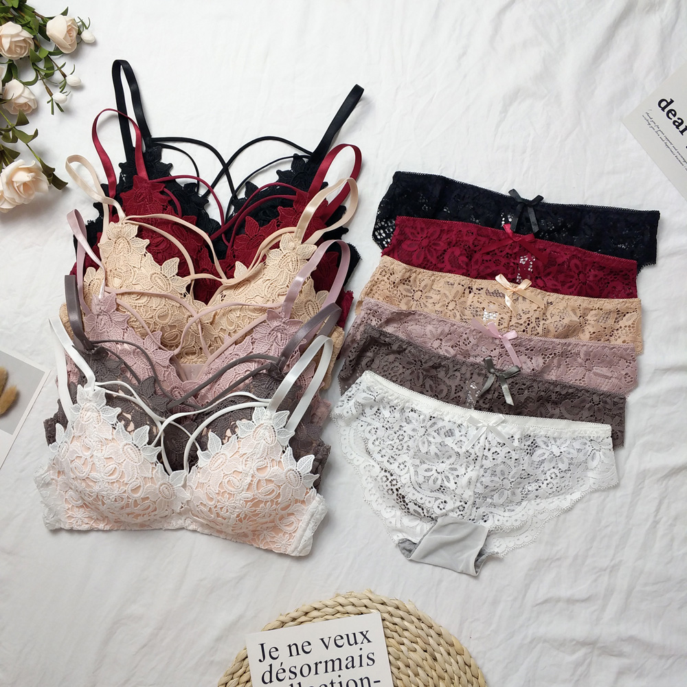 / 時尚性感蕾絲無鋼圈聚攏舒適雙肩帶三角杯內衣學生文胸內褲套裝女