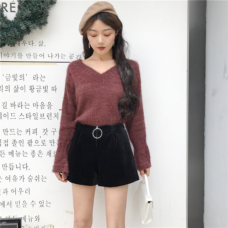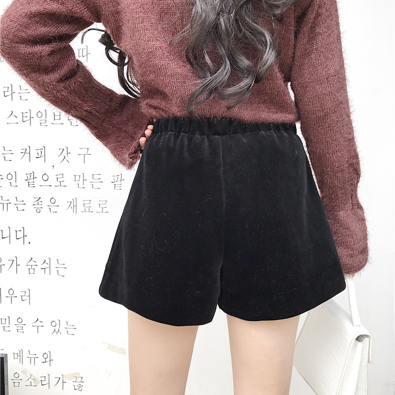 / 復古風闊腿短褲女秋冬裝2018新款韓版chic高腰顯瘦絲絨休閑靴褲子
