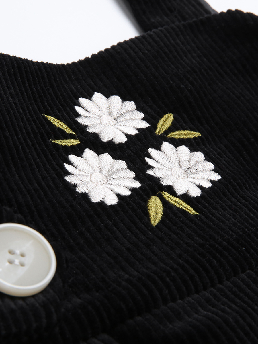 / MG小象復古高腰背帶裙女秋冬2018新款繡花燈芯絨黑色百褶連衣裙潮