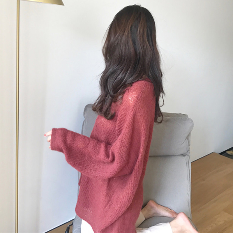 寬松慵懶風毛衣女2018新款學生套頭針織衫秋裝V領長袖休閑上衣潮