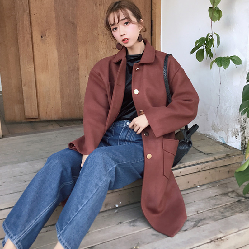 / 2018流行毛呢外套女秋冬裝新款赫本大衣小個子學生寬松長袖風衣潮