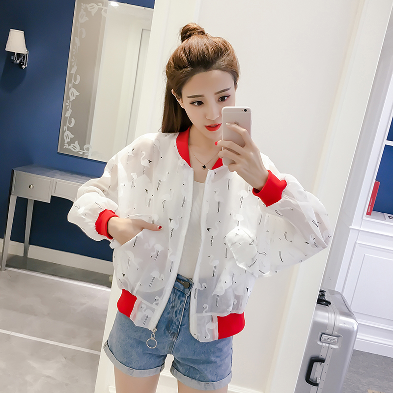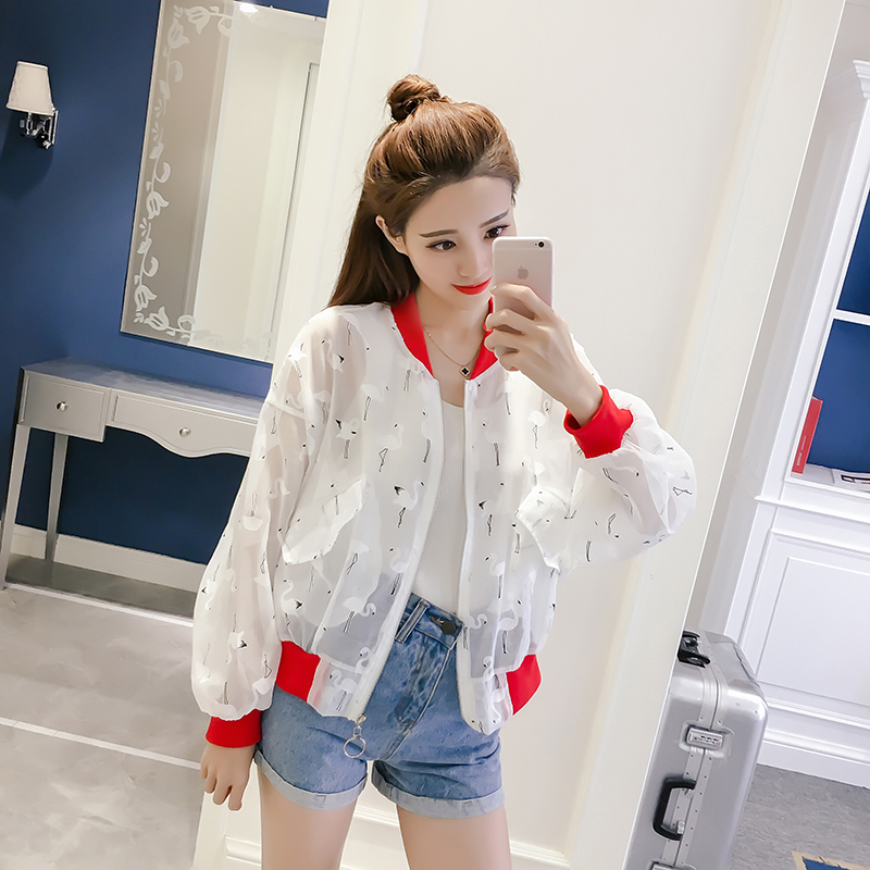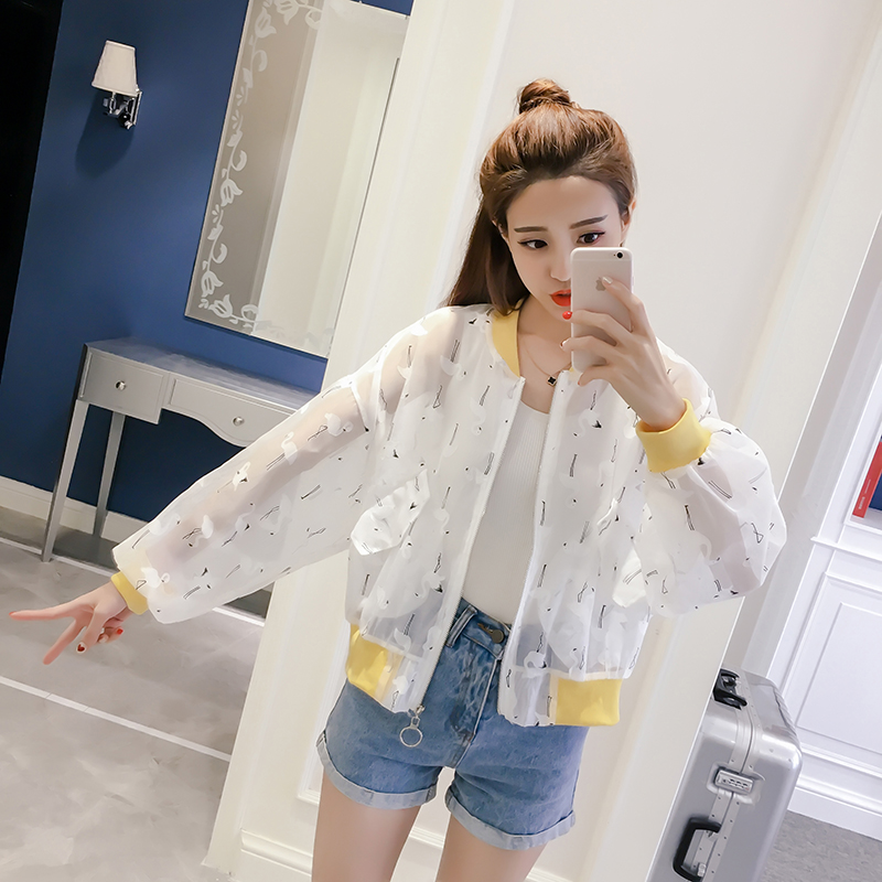 / 防曬衣女夏季新款透視歐根紗韓版長袖寬松百搭短款外套棒球服