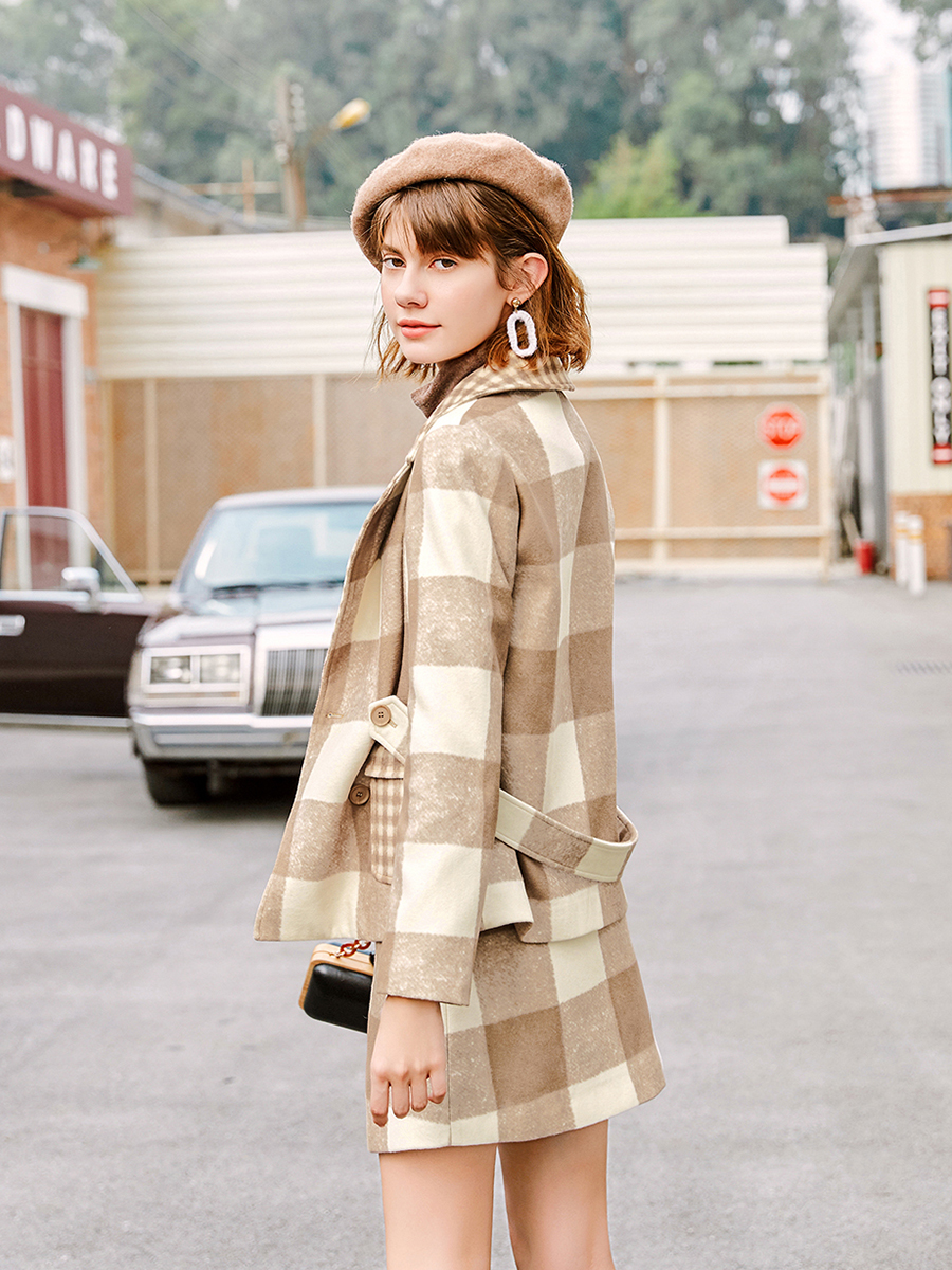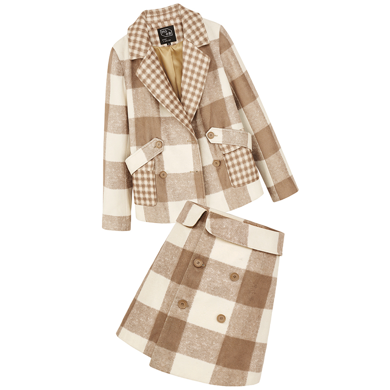 外套-格子|半裙-格子