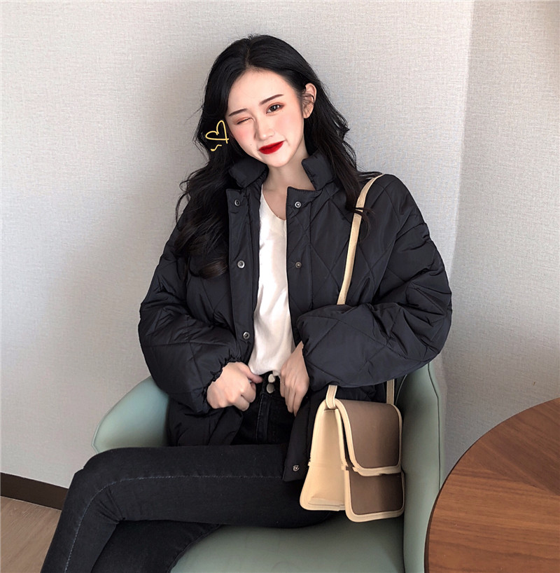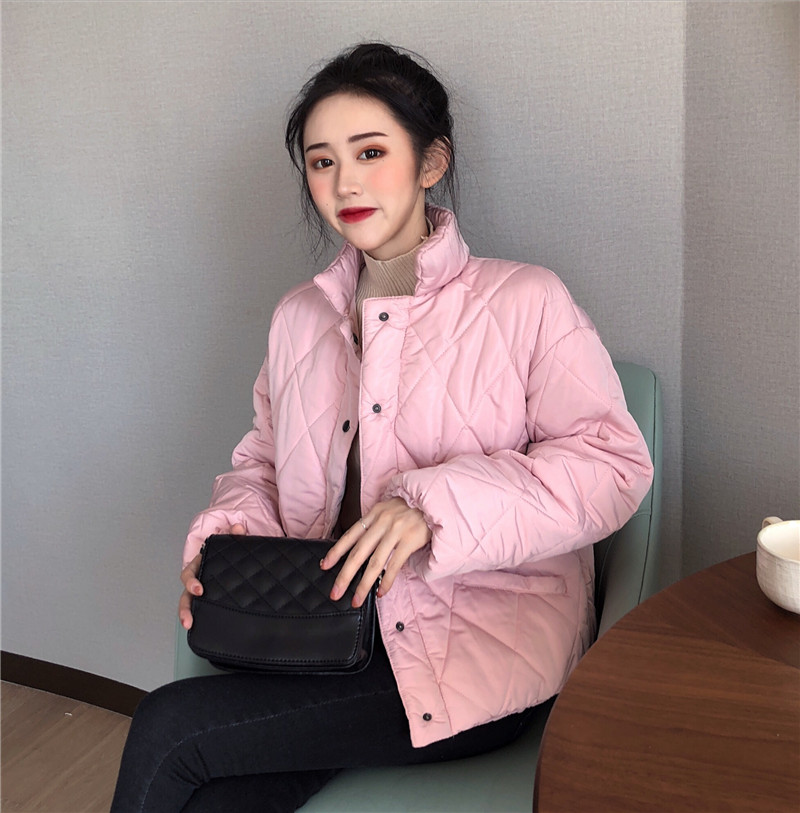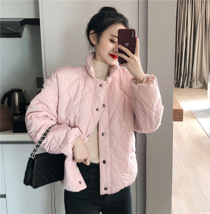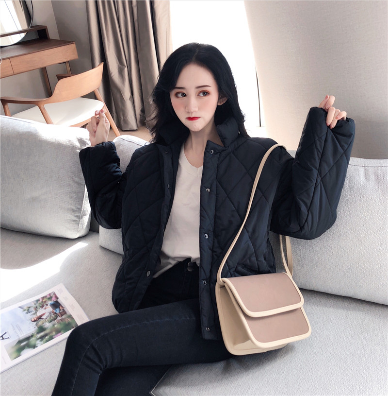 / 復古加厚保暖新款時尚秋冬百搭純色菱格保暖小個子輕薄女棉衣外套