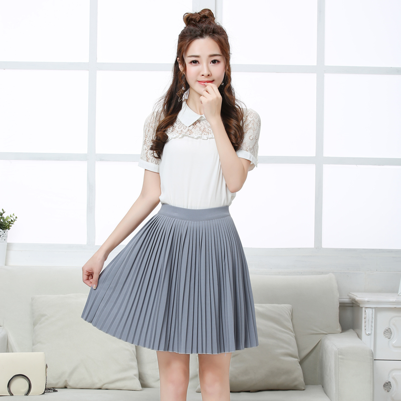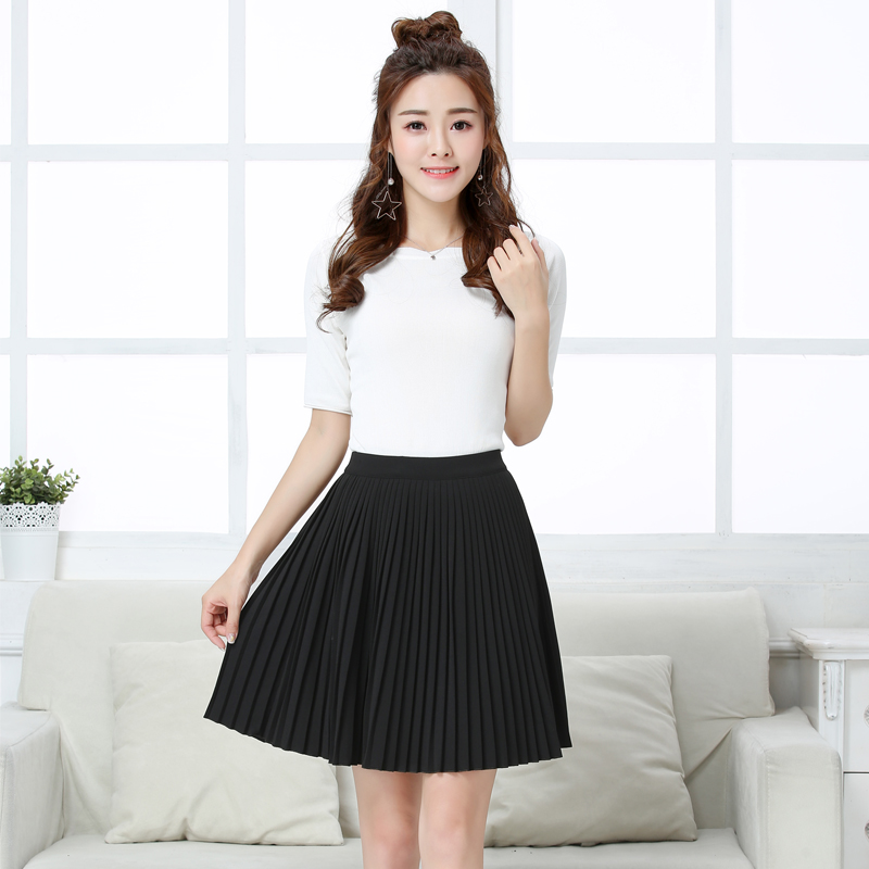 / 雪紡中長款百褶裙春夏新款a字短裙學生韓版高腰百搭半身裙子