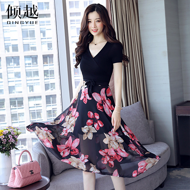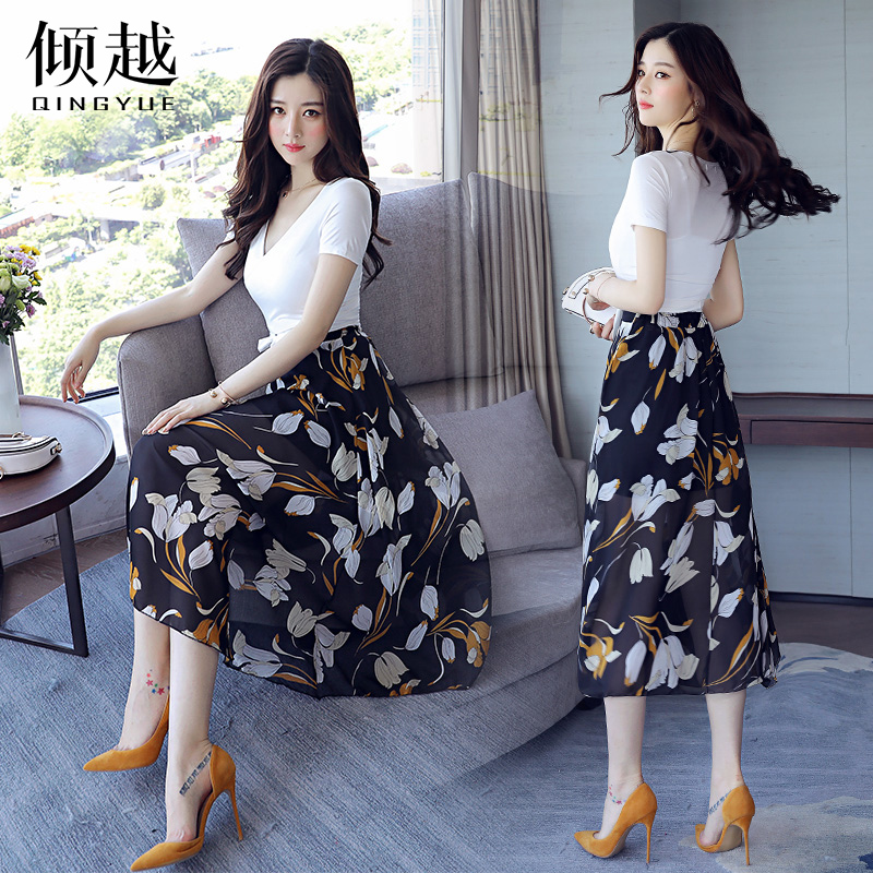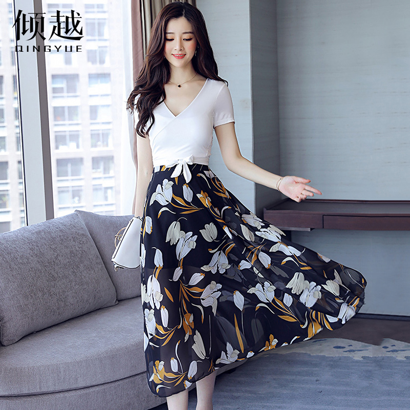 / 時髦套裝女2017夏裝新款雪紡修身裙子兩件套女洋氣收腰顯瘦連衣裙