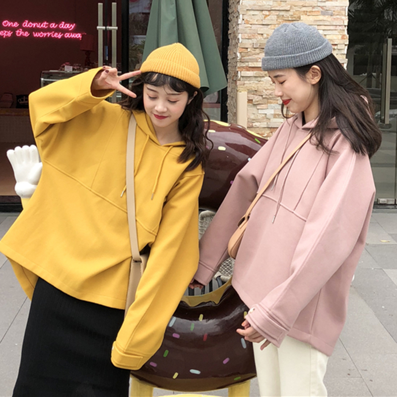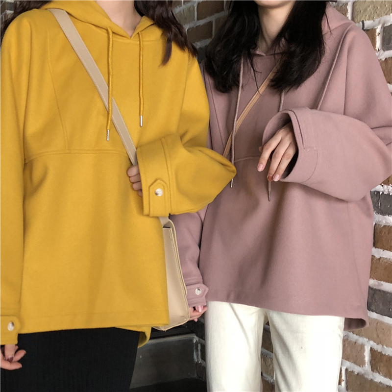 / 2018流行毛呢外套女秋冬裝新款純色時尚連帽衛衣學生復古休閑上衣