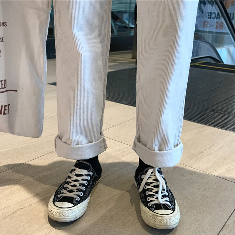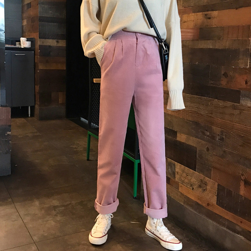 燈芯絨褲子女秋冬裝2018新款韓版高腰顯瘦休閑褲學生寬松直筒長褲