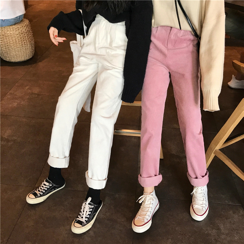 / 燈芯絨褲子女秋冬裝2018新款韓版高腰顯瘦休閑褲學生寬松直筒長褲