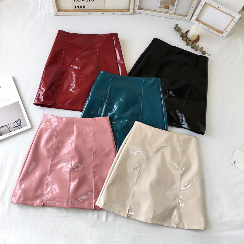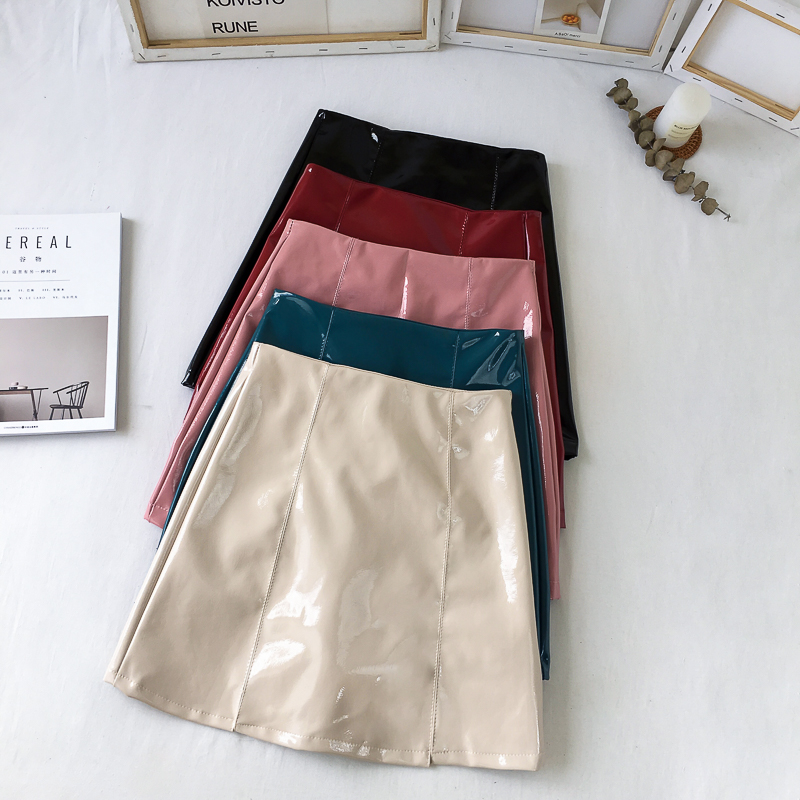 / 韓版百搭亮皮果凍色皮裙短裙女學生2018新款a字裙半身裙包臀裙