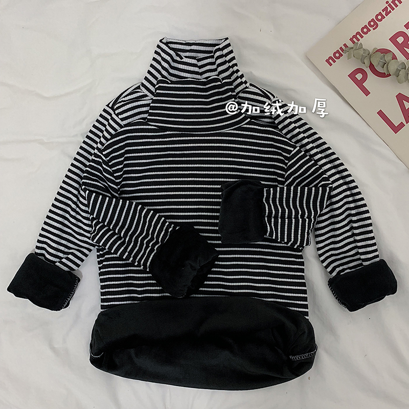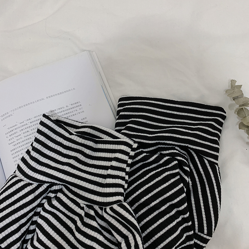 chic高領條紋打底衫女秋冬裝2018新款韓版學生修身長袖T恤上衣潮