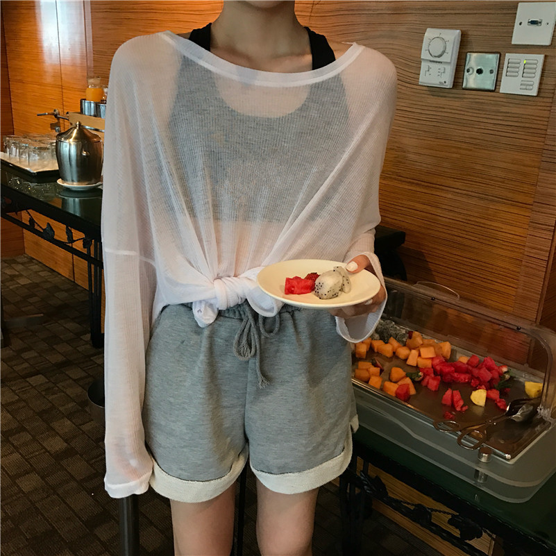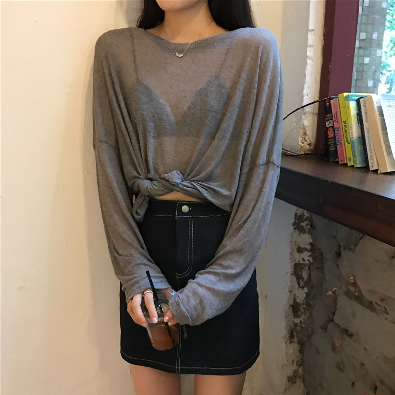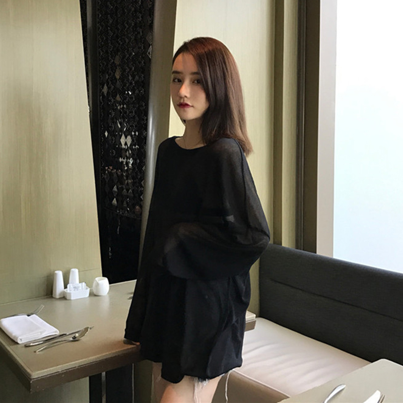 / 寬松透視薄款長袖中長款百搭時尚復古chic風新款韓版防曬T恤潮女