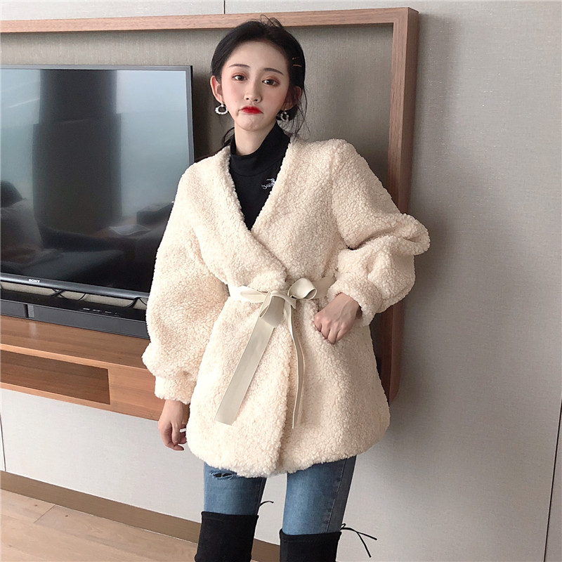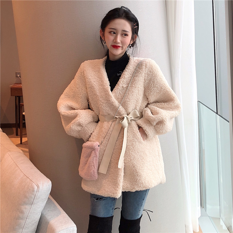 / 秋冬復古chic時尚寬松顯瘦百搭新款開衫簡約大牌蝴蝶結系帶毛外套