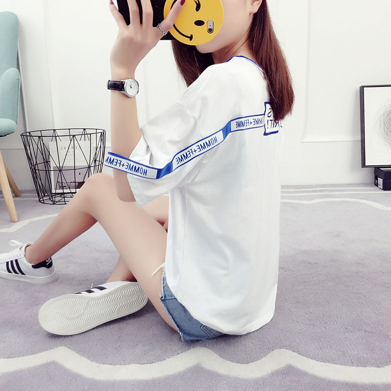 夏裝新款韓版學生潮百搭衣服女夏季短袖寬松t恤破洞時尚上衣