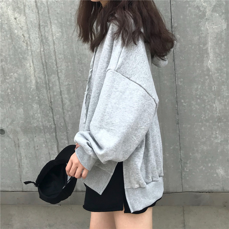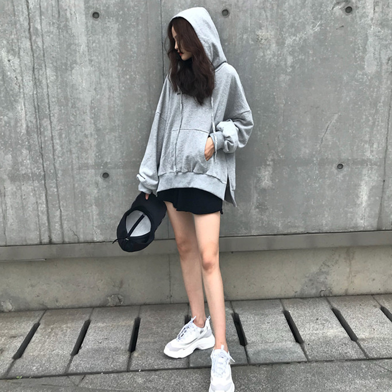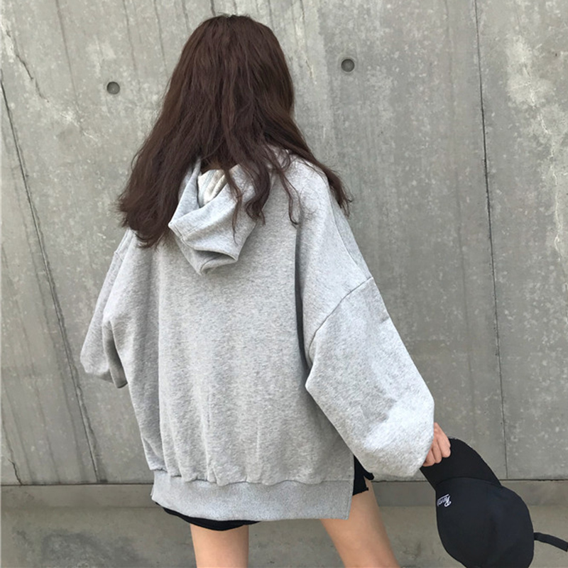 秋裝女2018新款韓版學生寬松長袖連帽衛衣少女慵懶灰色字母上衣潮