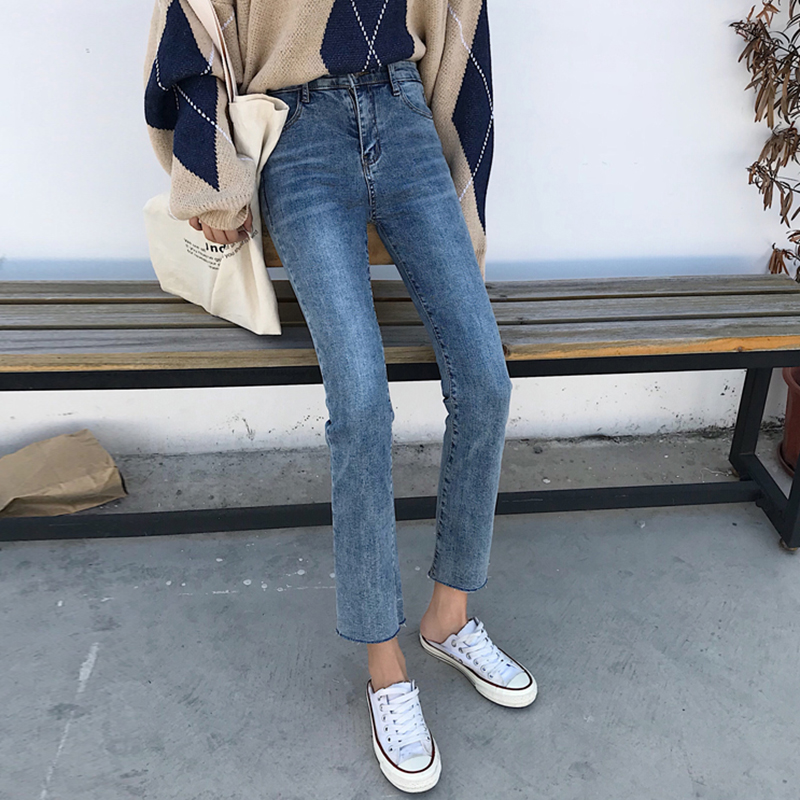 / 怪味少女高腰顯瘦九分牛仔褲秋冬裝新款韓版復古初戀休閑微喇褲子