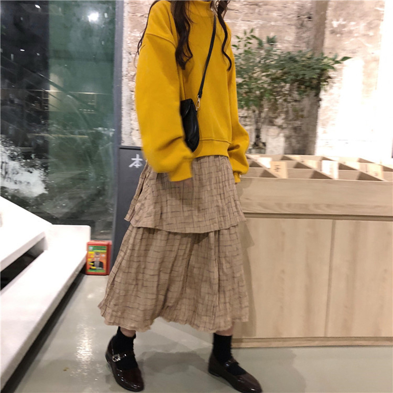黑衛衣|黃衛衣|卡其格子裙|咖啡格子裙