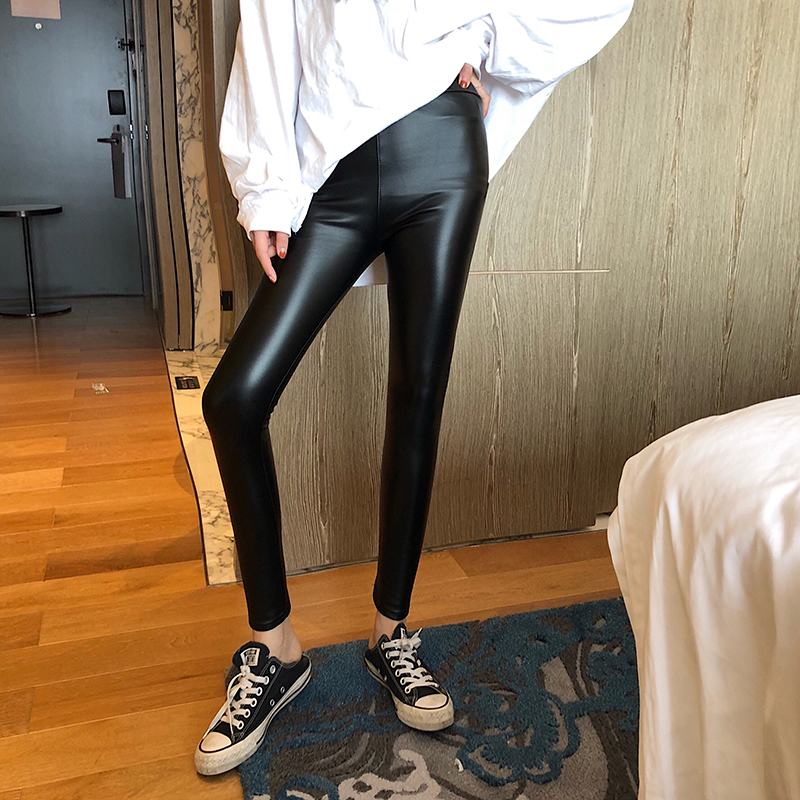 / 外穿打底小腳褲女秋冬裝2018新款韓版高腰修身黑色顯瘦PU皮長褲子