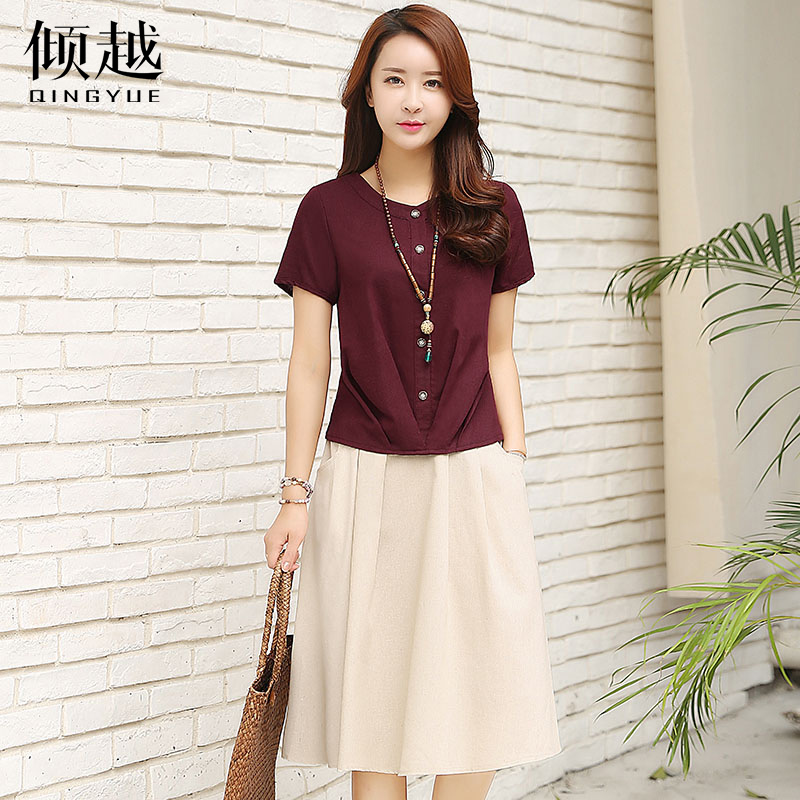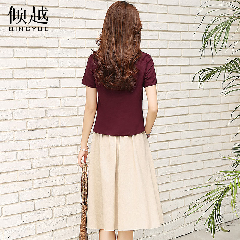 傾越2017夏季新款連衣裙女中長款套裝裙兩件套韓版學生小清新裙子