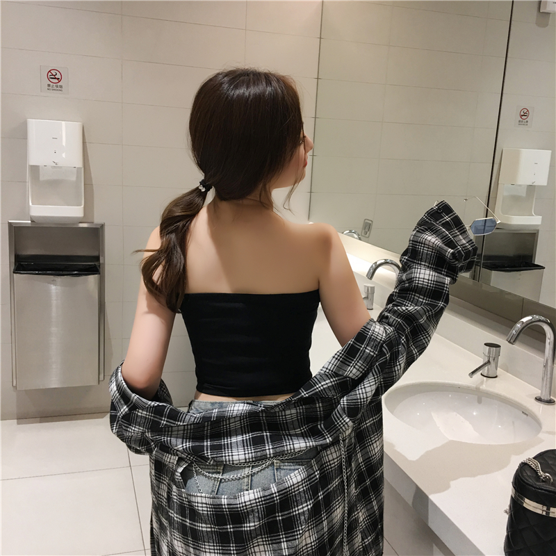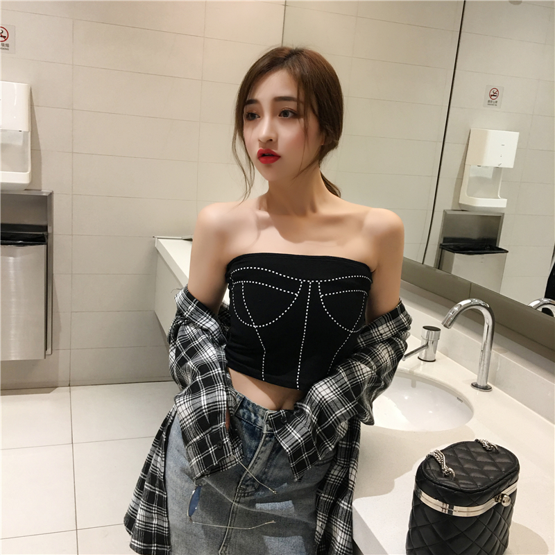 / 韓版秋裝女2018新款無袖背心百搭一字肩印花抹胸性感裹胸內搭上衣