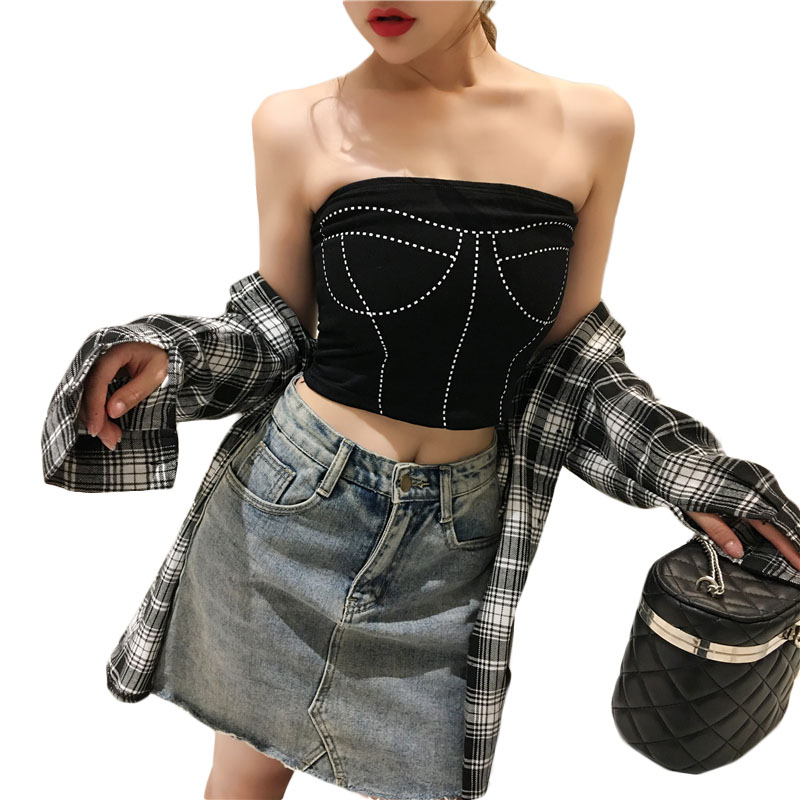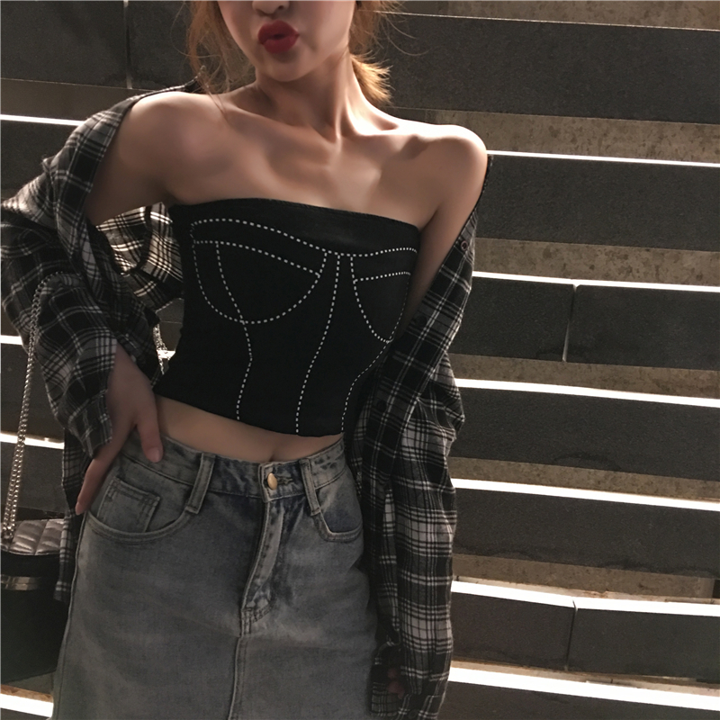 韓版秋裝女2018新款無袖背心百搭一字肩印花抹胸性感裹胸內搭上衣