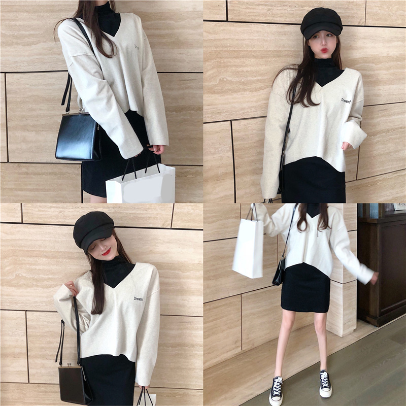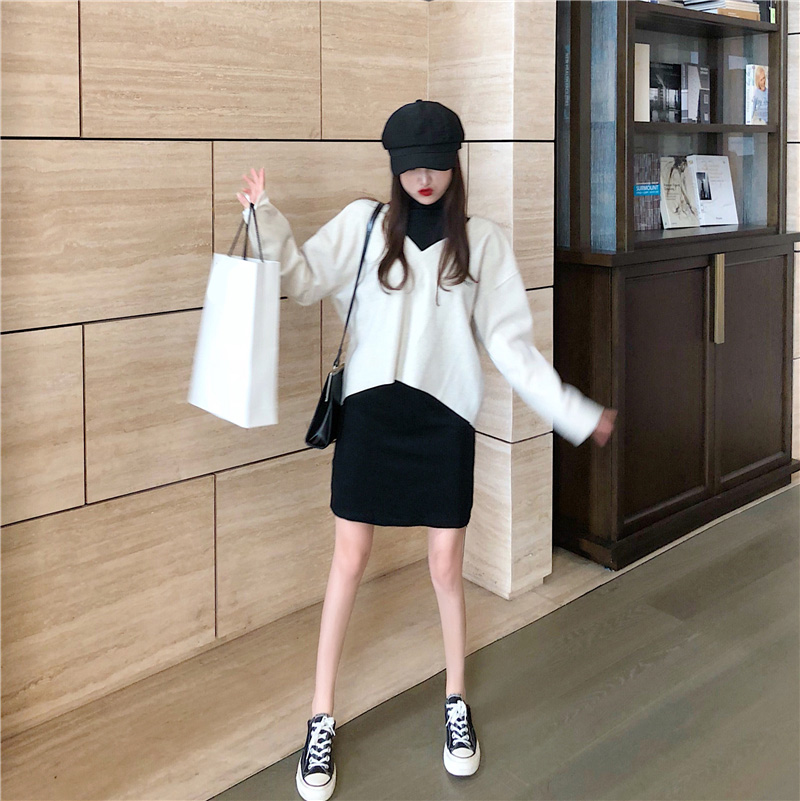 / 新款韓版毛呢套頭上衣高領背心彈力連衣裙女兩件套時尚套裝女裝潮