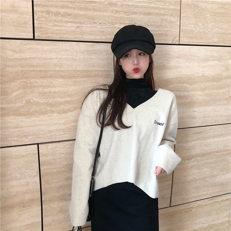 淺灰色上衣|黑色打底裙
