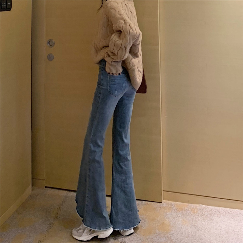 復古氣質喇叭褲高腰顯瘦不規則牛仔褲女春秋2018新款韓版學生長褲
