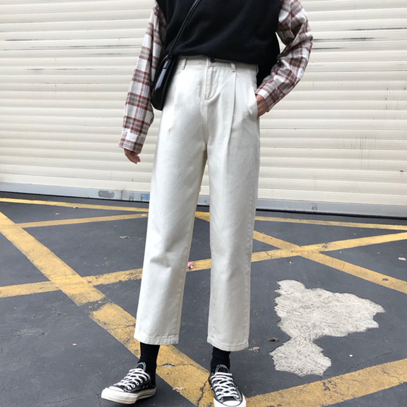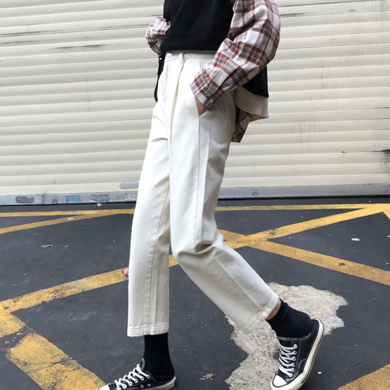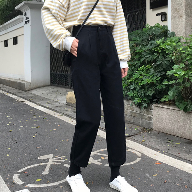 / 怪味少女褲黑色直筒牛仔褲冬裝2018新款韓版學生高腰顯瘦九分褲子