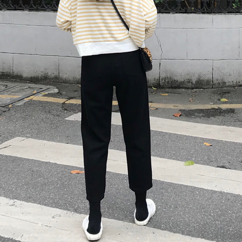 怪味少女褲黑色直筒牛仔褲冬裝2018新款韓版學生高腰顯瘦九分褲子