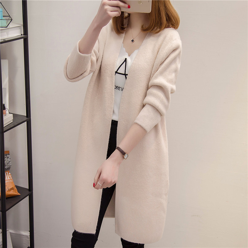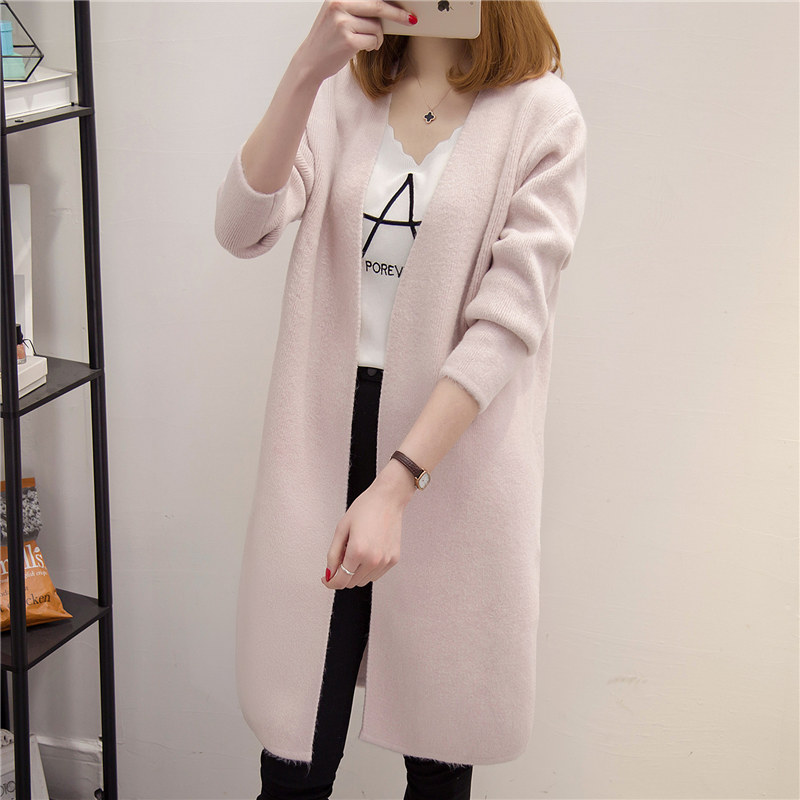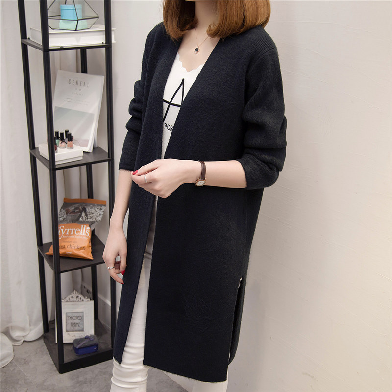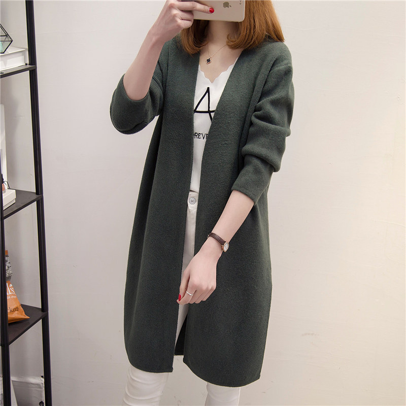 / 女裝春裝新款潮韓版寬松純色針織衫開衫百搭中長款毛衣外套