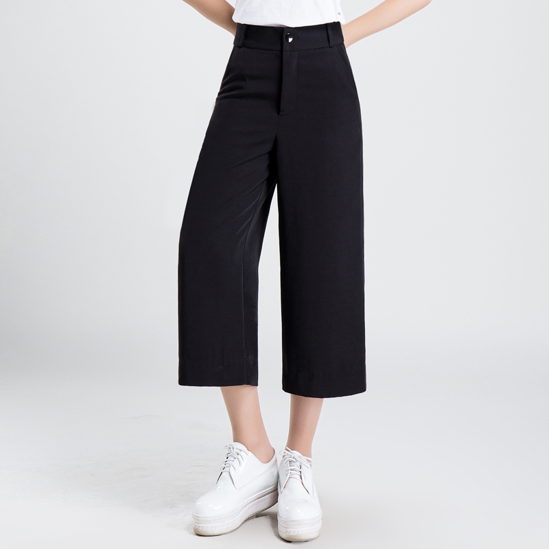 / 春裝新款韓版高腰顯瘦七分直筒褲寬松休閑西裝闊腿褲女褲子夏