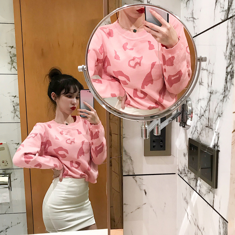 復古韓版新款女裝網紅同款超火豹紋針織衫女長袖秋裝寬松打底上衣