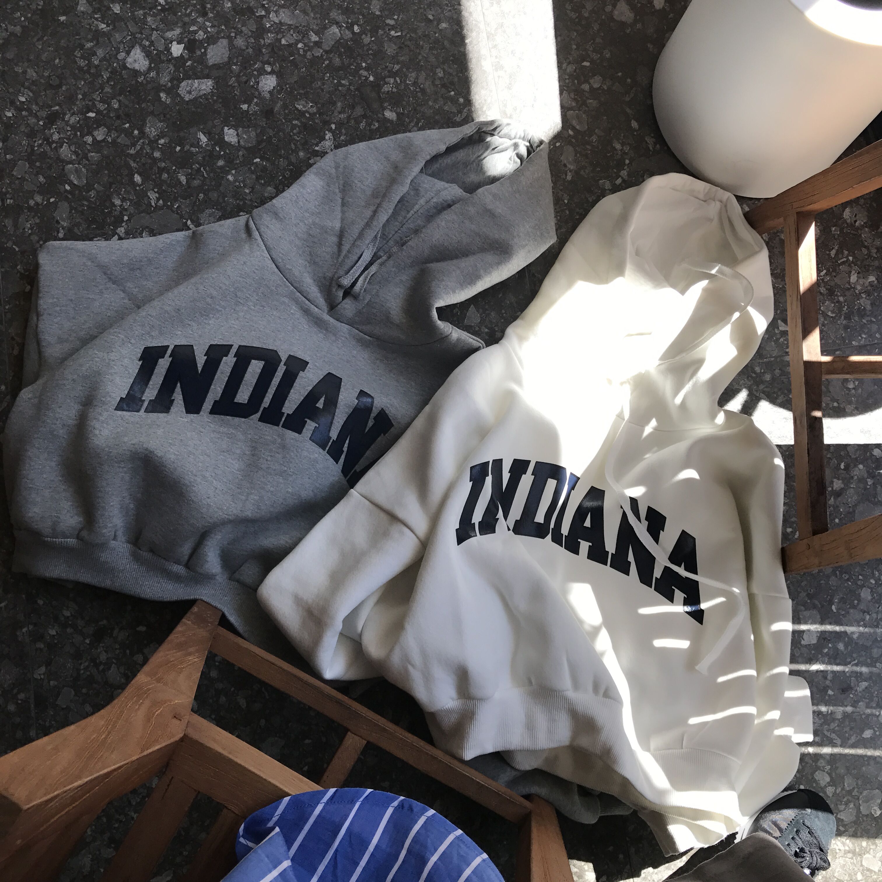 韓版chic早秋上衣慵懶衛衣女秋短款字母連帽加絨衛衣外套加厚帽衫