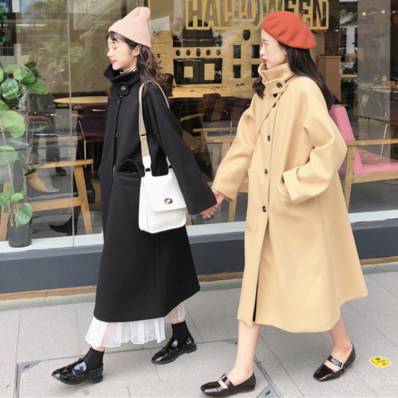 / 2018流行長袖毛呢外套女秋冬裝新款赫本大衣加厚長款黑色開衫上衣