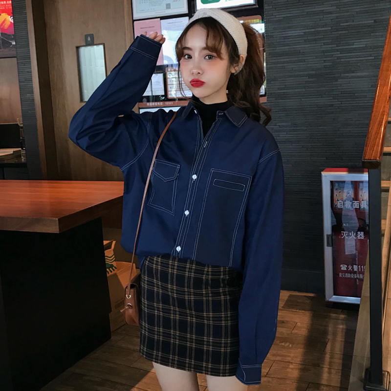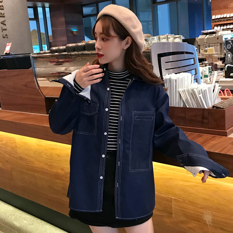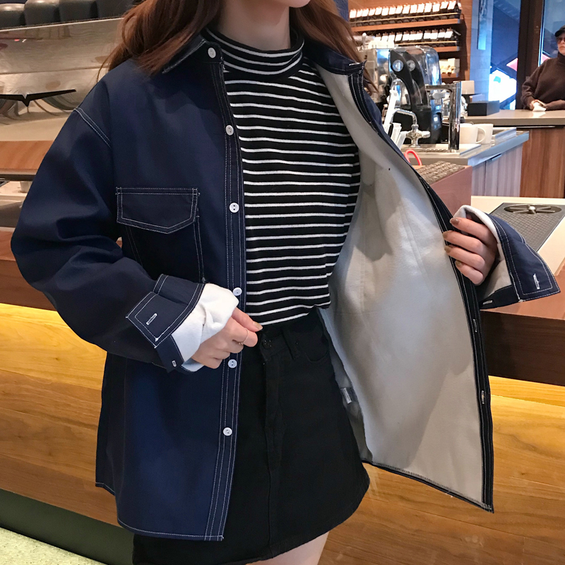 / 秋冬女裝2018新款時尚寬松長袖牛仔襯衫學生加絨保暖外套休閑上衣